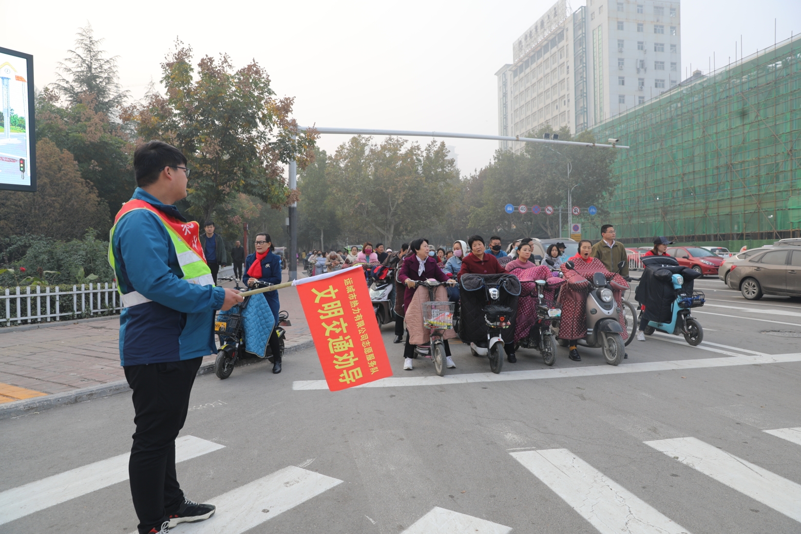 11月8日,公司志愿者積極參與市文明委組織的《文明交通勸導》活動。文明城市創(chuàng)建工作開展以來,志愿者服務活動已是公司常態(tài)化的工作之一。在供熱運行工作來臨之際,公司稽查大隊的志愿者們積極投身到志愿服務活動中來,做到了創(chuàng)文工作與供熱運行工作兩不誤,既保證了活動效果,又保證了正常工作,充分體現(xiàn)了運城熱力人的精神風貌;顒又校驹刚邆兗娂姳硎荆阂浞职l(fā)揮學雷鋒精神模范作用,在日常生活中文明出行、規(guī)范出行,通過自己的示范、引導,使文明出行成為大家的一種行為習慣,為創(chuàng)造安全、有序、文明、暢通的道路交通環(huán)境增光添彩。