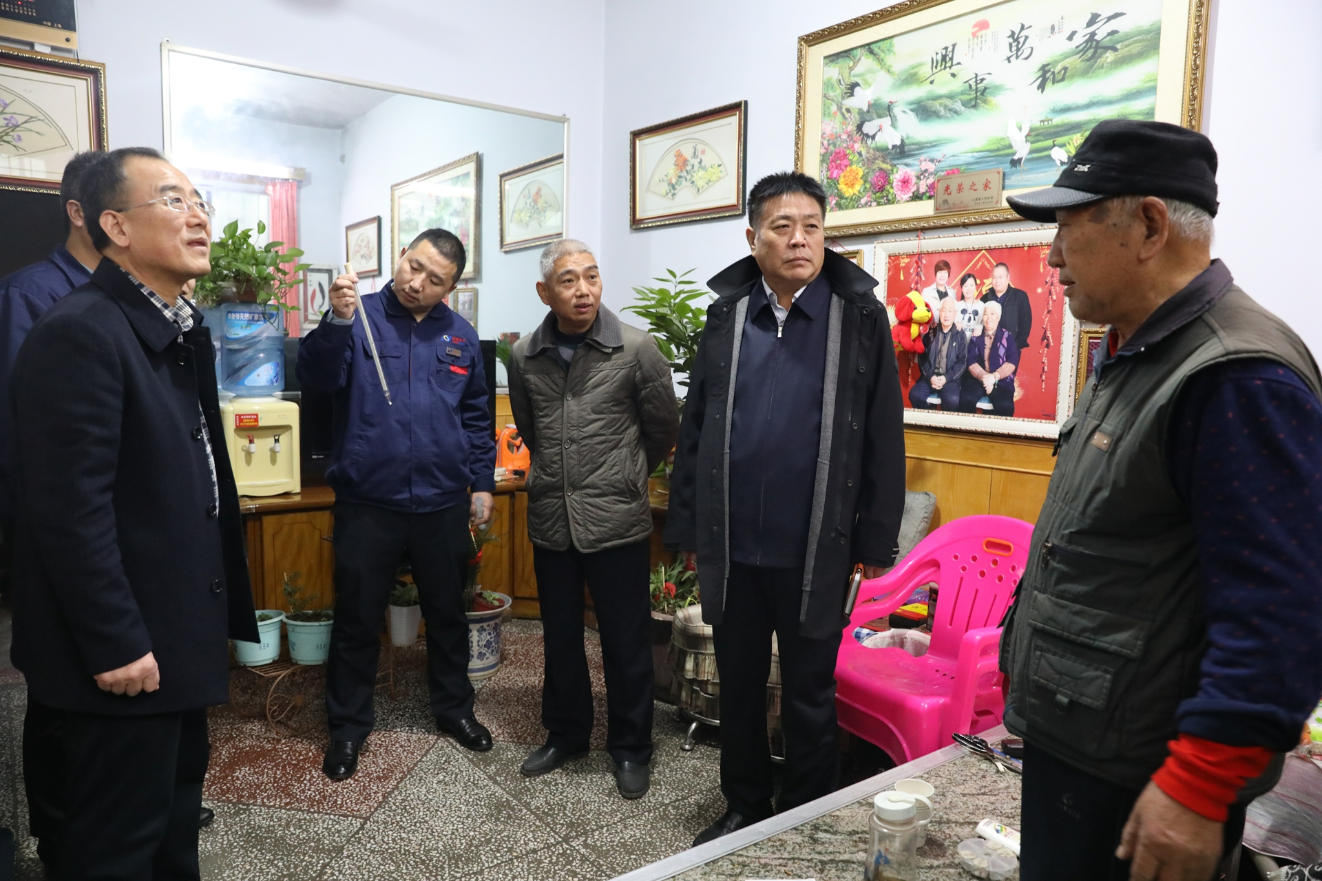 在財(cái)政局家屬院,有居民反映巷道坡下的居民家中不熱。馬董事長(zhǎng)一行立即趕往最末端的一居民家入戶查看,室內(nèi)溫度確實(shí)不高。馬福森董事長(zhǎng)當(dāng)即與副總經(jīng)理陳繼彤、總工程師昝啟民探討解決方案,即開(kāi)啟備用循環(huán)泵,調(diào)整頻率,加大流量,確保末端用戶家中溫度達(dá)標(biāo)。