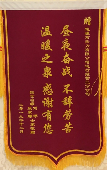 一年里,我們完成圣惠路 — 紅旗街管網(wǎng)工程建設(shè)、三供一業(yè)改造工程建設(shè)移交、老舊小區(qū)分戶改造項(xiàng)目工程等;供熱運(yùn)行啟動(dòng)以來,平衡管網(wǎng)、晝夜巡檢、進(jìn)區(qū)入戶訪民問暖,解民憂、保供暖……室外寒風(fēng)刺骨,室內(nèi)溫暖如春,廣大群眾在感受溫暖的同時(shí),紛紛送來牌匾、錦旗以表謝意。優(yōu)質(zhì)服務(wù)贏贊譽(yù)、面面錦旗表心意,雖然是一面很普通的錦旗、牌匾,但它對熱力人來講是新年最好的禮物,它象征著用戶對我們工作的最大肯定,它代表的是一份認(rèn)可、一份信任、一份期盼,更是一份責(zé)任。