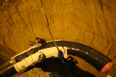 發(fā)令槍已經(jīng)打響,時不我待。在東部新區(qū)集中供熱項目部臨時黨支部統(tǒng)一部署下,一標段現(xiàn)場管理組的同志協(xié)同全體參建單位,按照施工預(yù)案,各司其職,嚴陣以待,黨員干部沖鋒在先,兼顧現(xiàn)場管理和地面交通疏導(dǎo),大家以小時為單位,各道工序緊密銜接,有序推進,當(dāng)晚9時許,瀟瀟雨聲中,溝槽開挖,經(jīng)一夜持續(xù)機械加人工作業(yè)至周六13時,溝槽成型,平整,碾壓,墊沙,下管,16時許,對管焊接至周日零時,探傷進場,經(jīng)拍片研判合格后,2點開始保溫,4時許,主路段開始回填,分層碾壓,同時路口北側(cè)彎頭焊接、探傷、保溫緊張銜接,至周日晚11時,清掃人員、水車,工人就位,準備拆除圍欄,周一凌晨1點,最后一道回填碾壓完成,清掃和沖洗路面……5時許,天色放亮,紅旗街韓信路口,路面清潔,交通恢復(fù)正常。