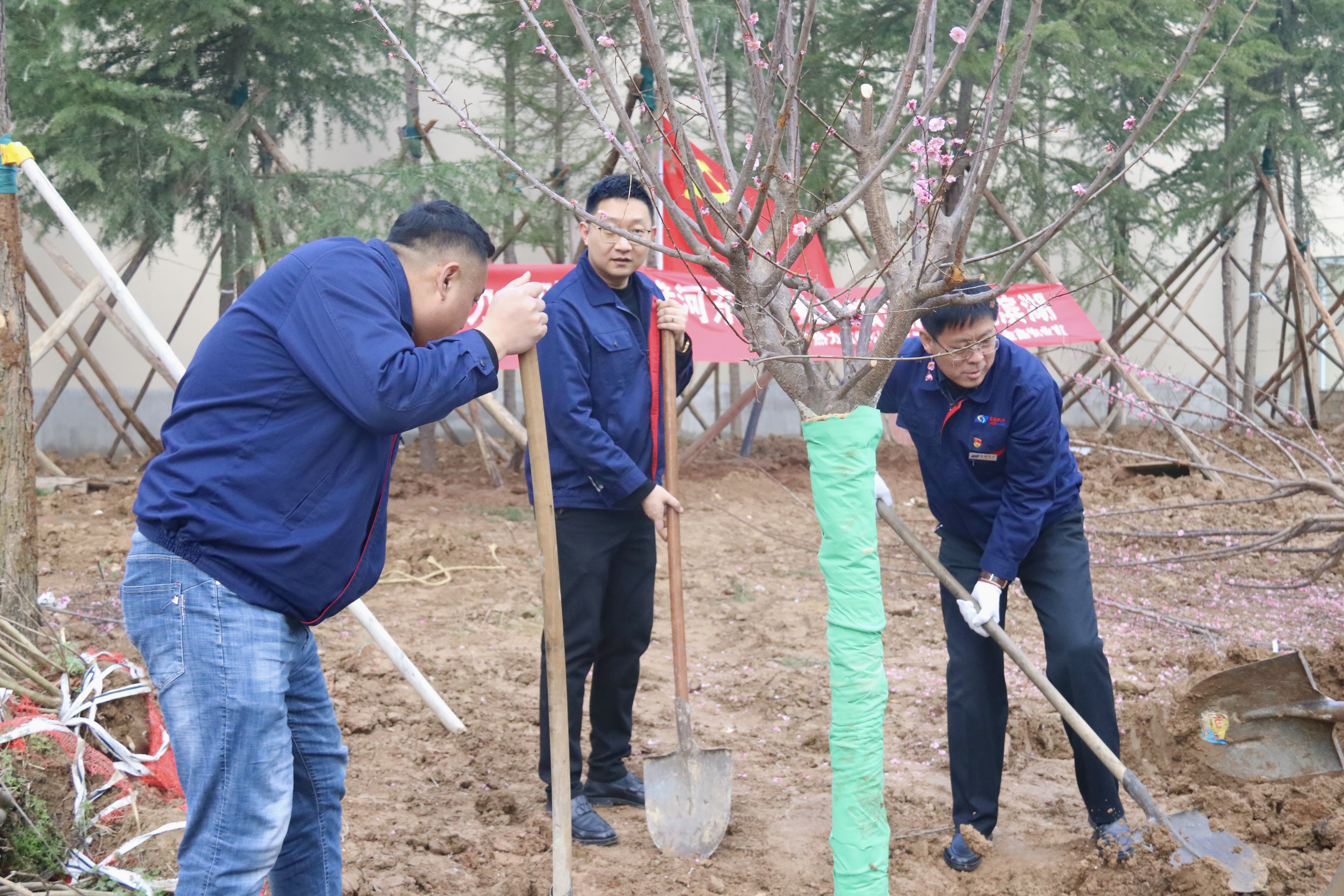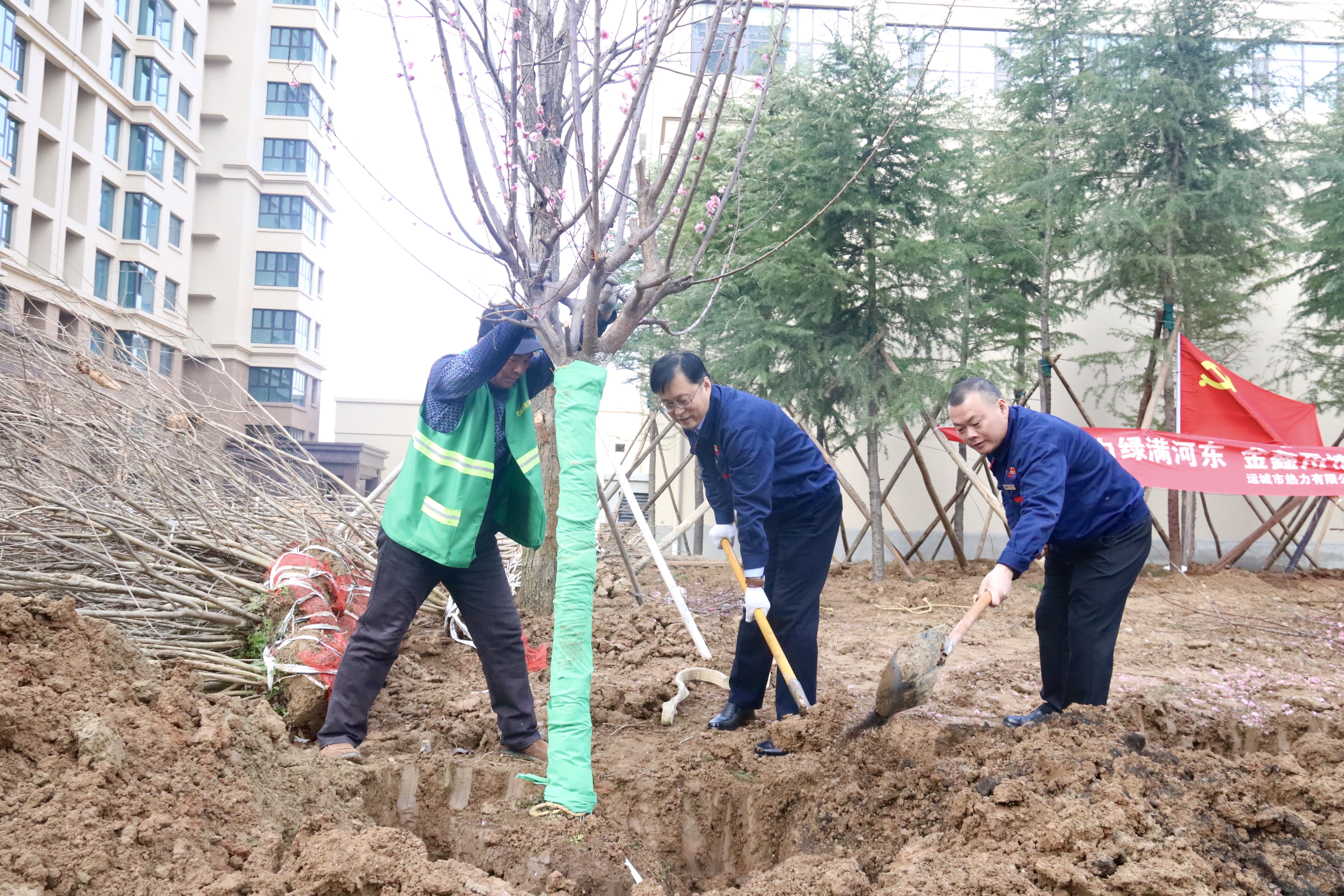 人勤春來早,植綠正當(dāng)時。3月12日,機關(guān)第二黨支部組織全體黨員、積極分子,協(xié)同黨群工作部、金鑫物業(yè)工作人員在濱湖一號小區(qū)舉行義務(wù)植樹活動。黨委委員、紀(jì)委書記王尚君同志,黨委委員、副總經(jīng)理樊晟同志,總經(jīng)理助理王學(xué)鋒同志以普通黨員身份參加了活動,與大家一起植樹,為初春的小區(qū)增添了清新綠意。在植樹過程中,同志們互相幫助,輪番上陣,既參與植樹綠化,美化了環(huán)境,增強了植綠、護綠、愛綠的意識,同時也提升了黨支部的凝聚力和戰(zhàn)斗力。人勤春來早,植綠正當(dāng)時。3月12日,機關(guān)第二黨支部組織全體黨員、積極分子,協(xié)同黨群工作部、金鑫物業(yè)工作人員在濱湖一號小區(qū)舉行義務(wù)植樹活動。黨委委員、紀(jì)委書記王尚君同志,黨委委員、副總經(jīng)理樊晟同志,總經(jīng)理助理王學(xué)鋒同志以普通黨員身份參加了活動,與大家一起植樹,為初春的小區(qū)增添了清新綠意。在植樹過程中,同志們互相幫助,輪番上陣,既參與植樹綠化,美化了環(huán)境,增強了植綠、護綠、愛綠的意識,同時也提升了黨支部的凝聚力和戰(zhàn)斗力。