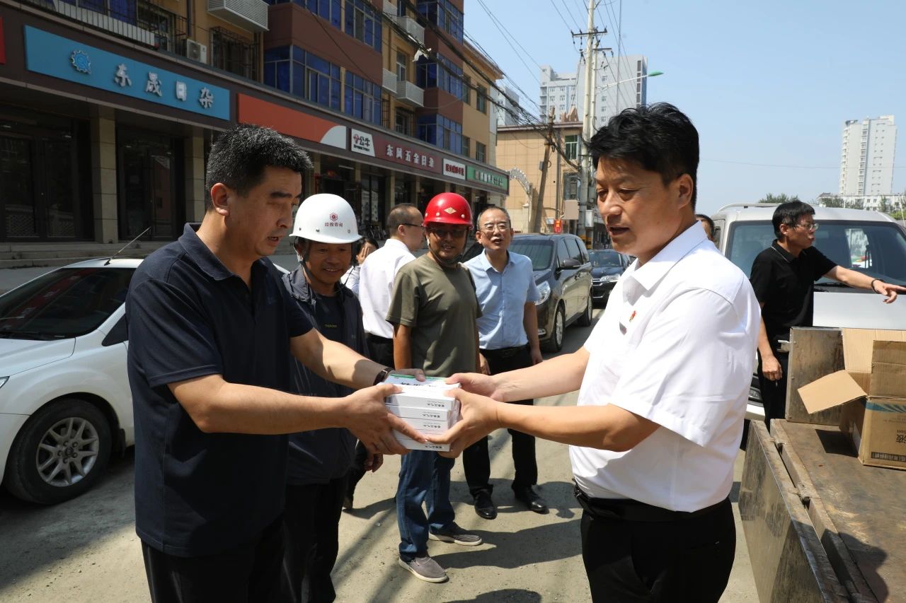 連日高溫,驕陽似火,熱浪襲人。為貫徹“以人為本”的理念,確保一線職工的身體健康和生命安全,促進(jìn)各項(xiàng)工作順利有序進(jìn)行,8月10日上午,公司黨委書記、董事長(zhǎng)杜偉師親自帶領(lǐng)公司領(lǐng)導(dǎo)班子一行赴熱源廠、工程施工現(xiàn)場(chǎng)、換熱站維,F(xiàn)場(chǎng)及關(guān)鋁電廠維檢工地開展“送清涼”慰問活動(dòng),慰問在高溫酷暑天堅(jiān)持工作的一線職工,為他們送去關(guān)懷。在維,F(xiàn)場(chǎng),公司領(lǐng)導(dǎo)親自將西瓜、藿香正氣水、風(fēng)油精、毛巾、礦泉水等防暑降溫用品送到每個(gè)奮戰(zhàn)在一線的職工手中,向他們表示親切的慰問,并叮囑大家在工作時(shí)務(wù)必確保身體健康和勞動(dòng)安全,讓職工們實(shí)實(shí)在在從心里感到 “清涼”,從而激發(fā)起廣大職工的大干熱情。公司領(lǐng)導(dǎo)心系職工的安全與健康,極大地激發(fā)了職工愛崗敬業(yè)的積極性,也進(jìn)一步增強(qiáng)了職工的凝聚力和向心力。