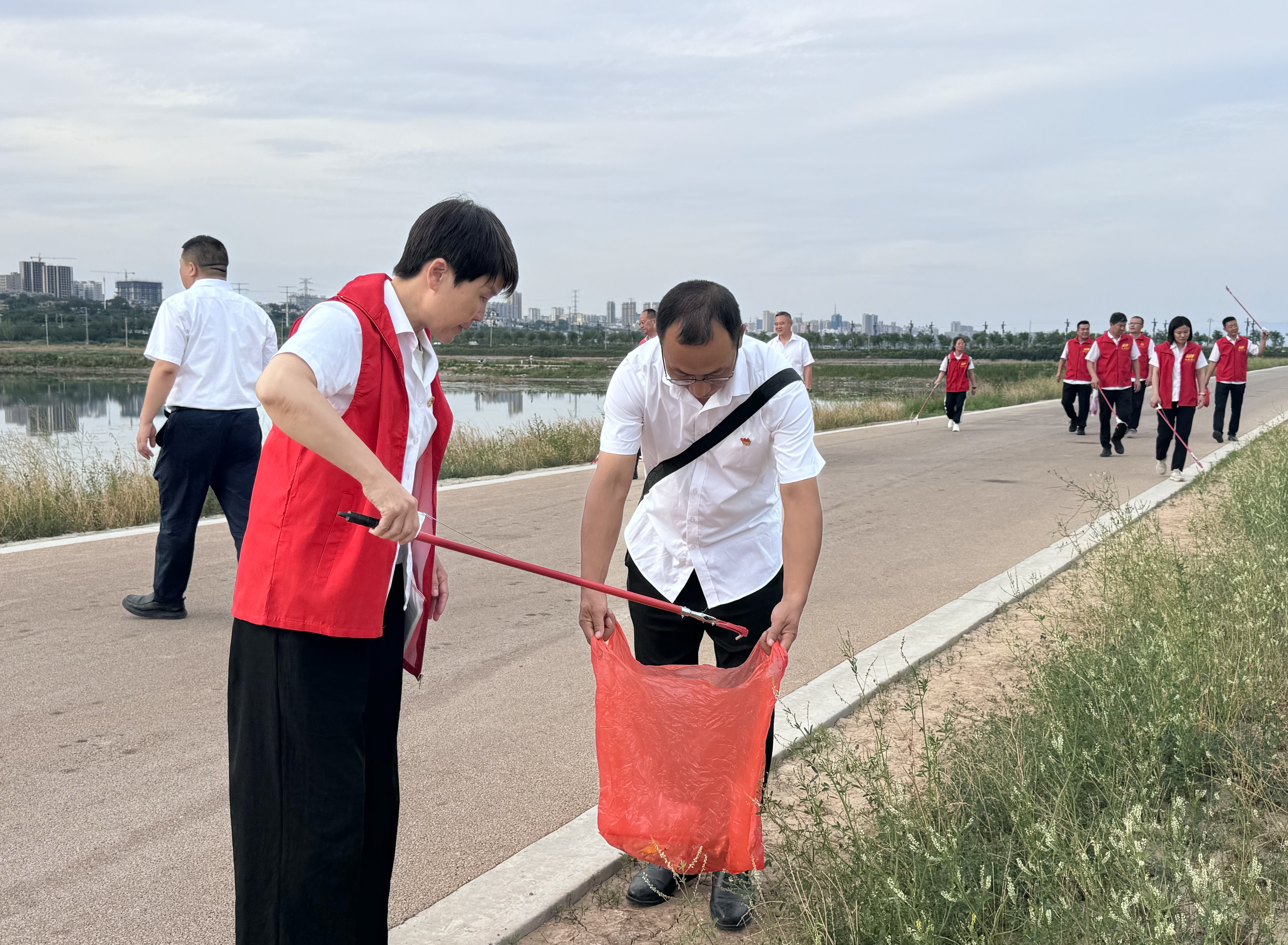在運(yùn)城鹽湖22號(hào)堤埝,沿著習(xí)近平總書記的足跡,支部全體人員重溫習(xí)近平總書記考察運(yùn)城運(yùn)城重要指示精神,深入學(xué)習(xí)習(xí)近平生態(tài)文明思想,開展“保護(hù)鹽湖 黨員先行”志愿活動(dòng)。大家拿起手中的工具,對(duì)鹽湖周邊的垃圾、煙頭、水草等進(jìn)行清理,活動(dòng)結(jié)束后,大家紛紛表示要在今后的生活中認(rèn)真踐行“綠水青山就是金山銀山”理念,積極參與“凈湖行動(dòng)”,以實(shí)際行動(dòng)為守護(hù)美麗鹽湖貢獻(xiàn)國(guó)企力量。