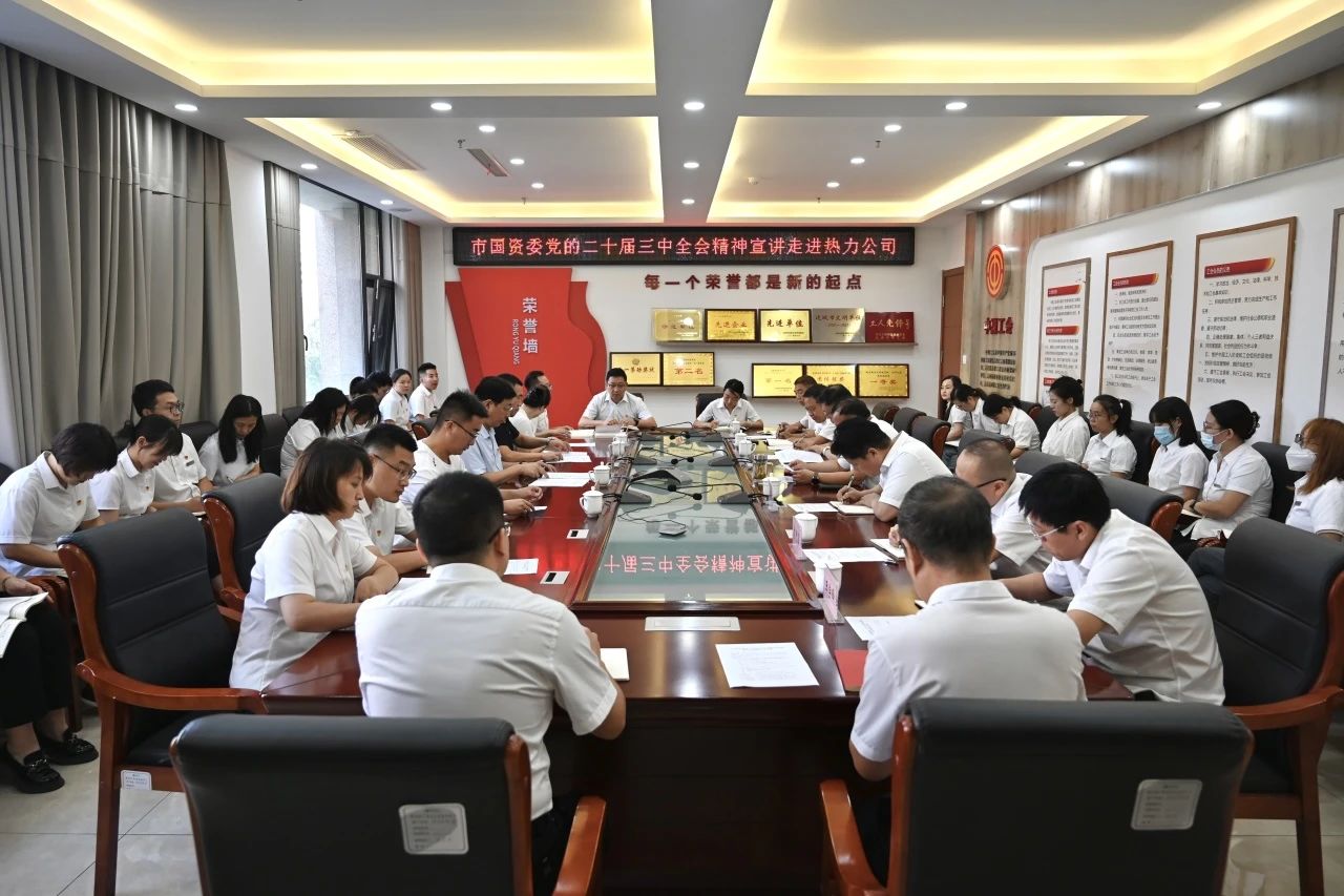 根據(jù)中央、省、市及市國資委安排部署,9月3日上午,市工信局黨組副書記、市國資委黨委專職副書記劉軍虎,市國資委國企黨建與企業(yè)領(lǐng)導(dǎo)管理科科長董政軍一行到公司宣講黨的二十屆三中全會精神,公司領(lǐng)導(dǎo)班子成員及機關(guān)第一黨支部全體人員參加,黨委書記、董事長杜偉師同志主持會議。