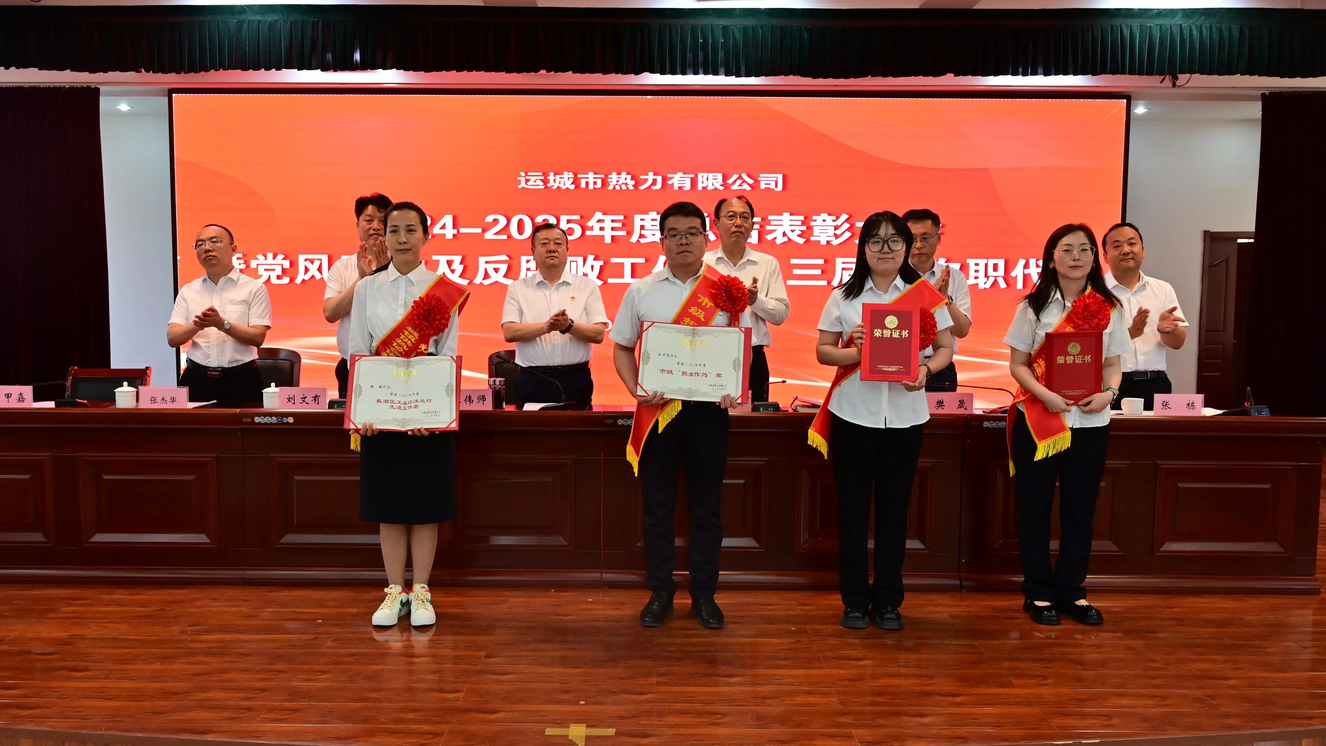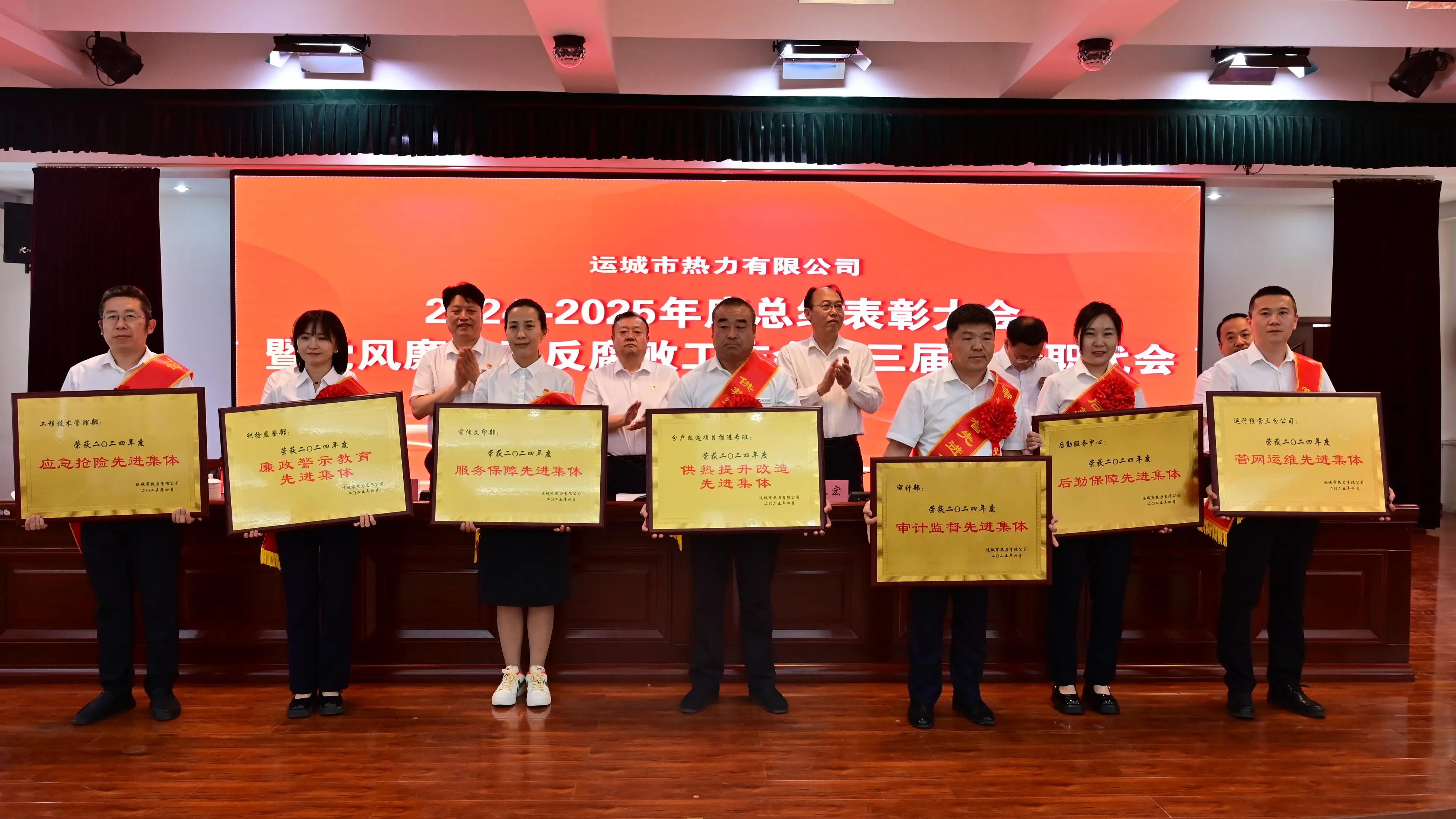 會上,黨委副書記、總經(jīng)理劉文有作了公司2024年度工作報告;黨委委員、紀委書記張棟同志作了公司2024年度黨風(fēng)廉政及反腐敗工作報告。黨委委員、副總經(jīng)理席甲嘉宣讀了《運城市中心城區(qū)集中供熱保障領(lǐng)導(dǎo)組關(guān)于表彰2024年度優(yōu)秀合作單位的通知》《運城市熱力有限公司關(guān)于2024年度公司團體及個人榮獲上級單位表彰情況的通報》《運城市熱力有限公司關(guān)于表彰2024-2025年度優(yōu)秀集體及先進個人的通知》,并組織頒獎;會議對6個優(yōu)秀合作單位、12個團體獎、7個團體專項獎、6個優(yōu)秀班組以及47名優(yōu)秀個人進行了表彰。