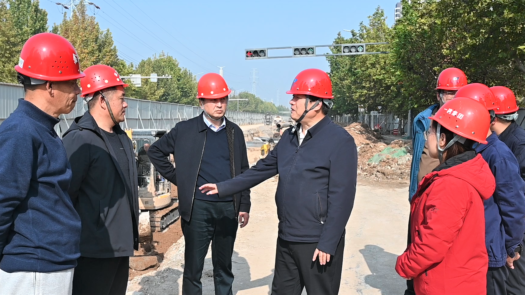 調(diào)研中,劉文有一行先后前往機場大道一次網(wǎng)、河?xùn)|東街一次網(wǎng)施工現(xiàn)場及紫荊府小區(qū)在建換熱站,現(xiàn)場詳細了解管網(wǎng)敷設(shè)進度、設(shè)備安裝質(zhì)量、施工人員配置及物資保障情況,并重點聚焦當(dāng)前施工中存在的難點堵點問題,現(xiàn)場研究解決方案。