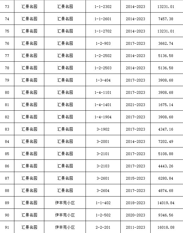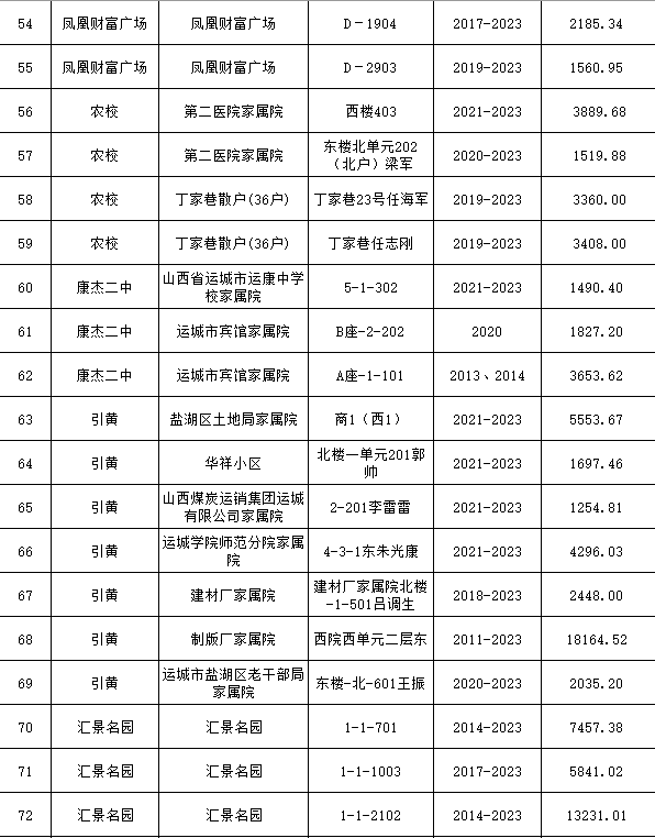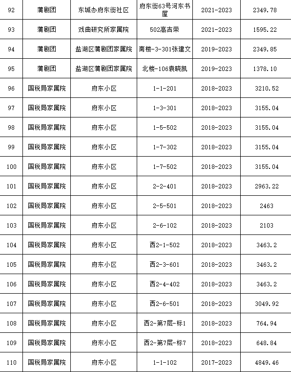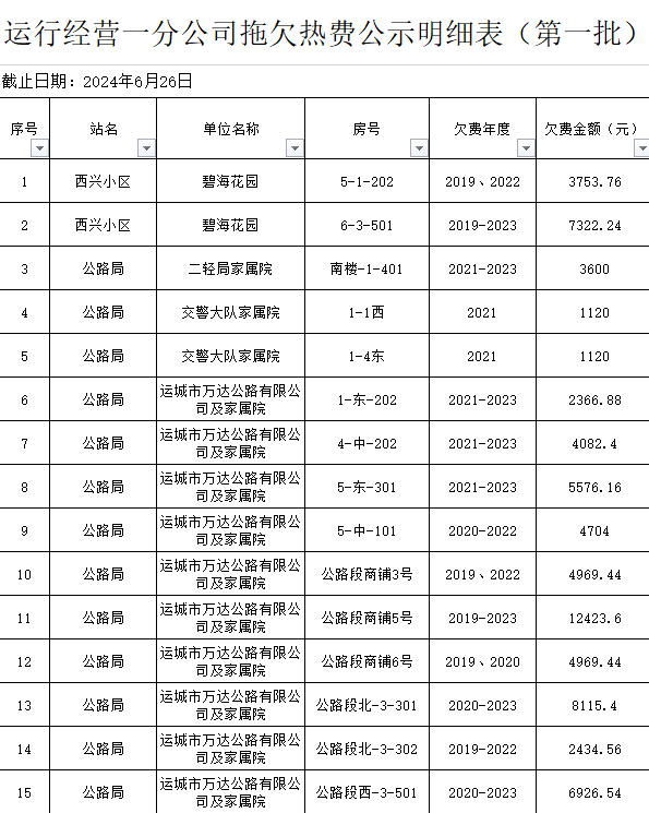 具體欠費名單如下: