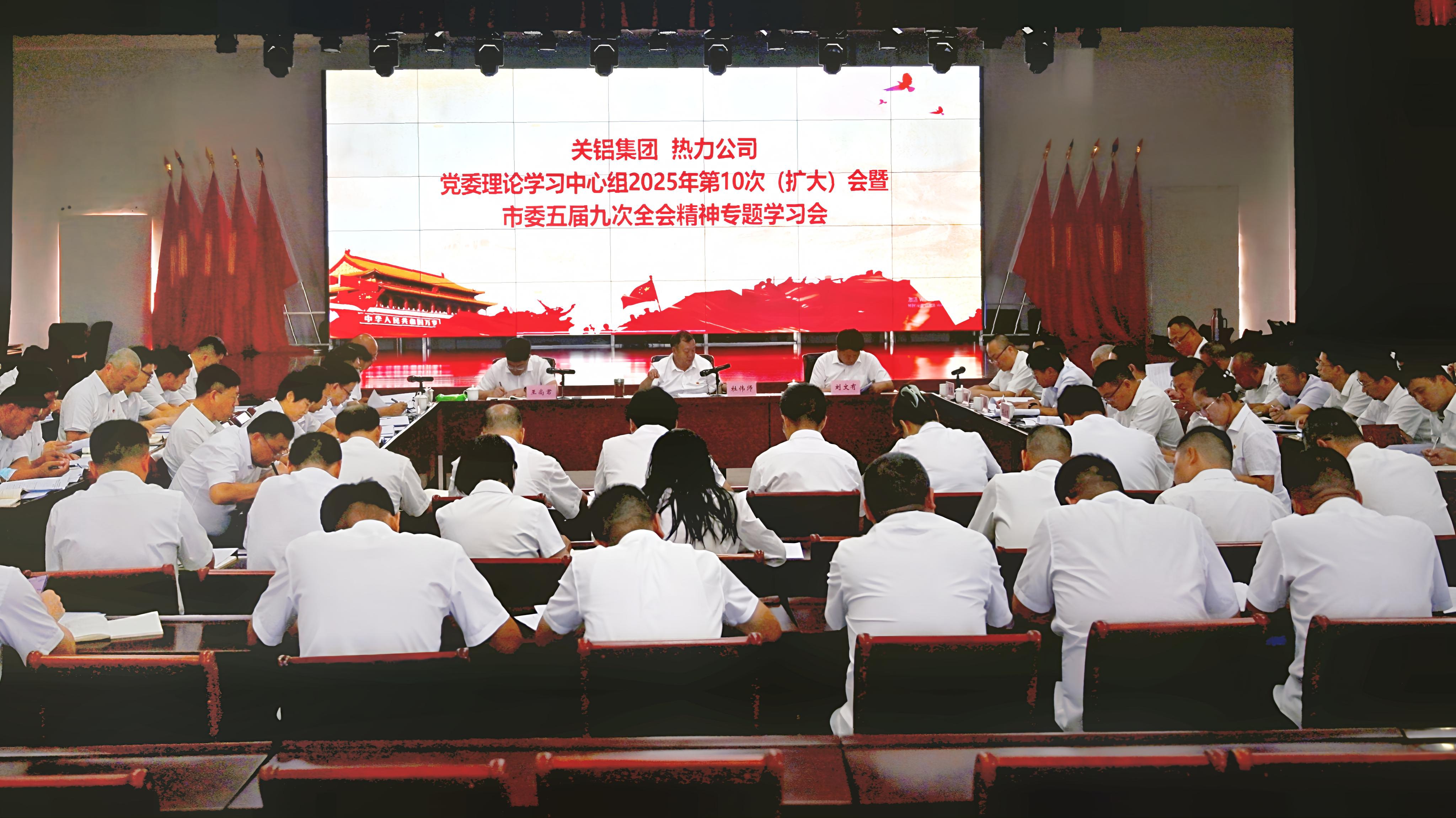 8月20日上午,公司黨委聯(lián)合關(guān)鋁集團(tuán)召開黨委理論學(xué)習(xí)中心組2025年第10次(擴(kuò)大)會暨市委五屆九次全會精神專題學(xué)習(xí)會。黨委書記、董事長杜偉師主持會議并講話。關(guān)鋁集團(tuán)、熱力公司領(lǐng)導(dǎo)班子成員,各黨支部書記、支部委員,中層管理人員參加會議。