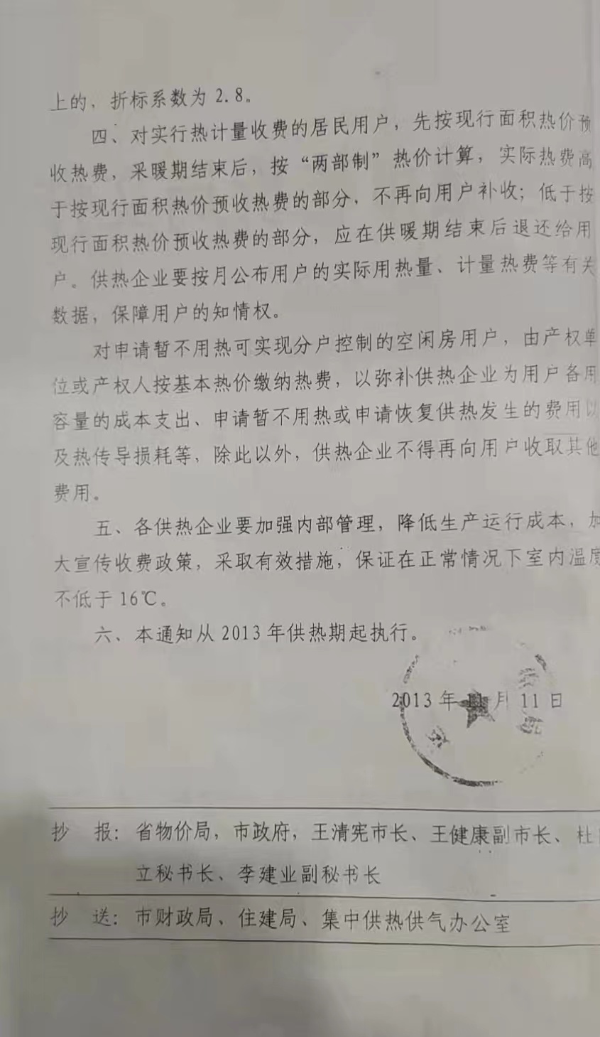 關(guān)于運城市區(qū)熱電聯(lián)產(chǎn)集中供熱價格的補充通知